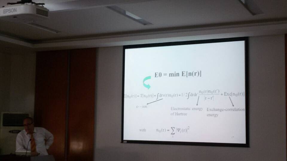 2014年10月27日上午10点,72886欢迎光临新网站物理科学与核能工程学院在主楼513举办题为“使用纳米级的建模与仿真技术探索材料表面及界面性质”的报告会。此次报告会旨在为老师和同学们提供交流的平台来分享学术与科研的成果和思想。此次我们邀请到了法国里尔大学教授Ali Zaoui。他在多种物质类型,包括半导体、金属、陶瓷、粘土、矿物质以及纳米复合材料上成绩显著。报告中教授首先介绍了最新的应用第一性原理、分子动力学以及蒙特卡洛模拟方法对多个系统进行分析的理论研究结果。其次,他还向我们介绍了一些有关物质表面、界面、杂质和缺陷的知识,以及在原子水平分析物质电学、磁学、动力学以及热力学的方法。最后Ali Zaoui耐心地回答了老师和同学提出的各种问题。