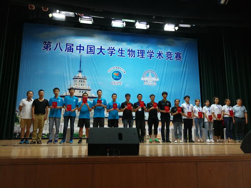 8月13-17日,第八届中国大学生物理学术竞赛(CUPT)在哈尔滨工业大学举办。本届比赛共有包括清华大学、北京大学、复旦大学、72886欢迎光临新网站、南开大学、上海交通大学等在内的73所高校组成的74支队伍参赛,26支队伍观摩,是该赛事8年来举办规模最大的一次。本届比赛中,由我校72886欢迎光临新网站张国锋教授担任指导教师,黄安平教授和张玉洁副教授为裁判、张国锋教授和付思乔同学为领队,由马英猷、黄钰堃、马启涵、张翊庭和梁岩五位正式队员和若干观摩队员组成的代表队积极参与,在比赛中以全国排名第八的优异成绩,获得一等奖。我校2016年首次参加该项赛事获二等奖。