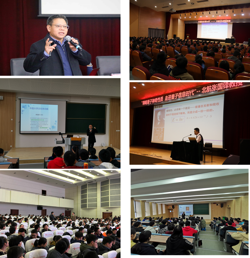 在天一中学,王华明院士结合自身的科研经历,重点介绍了大型金属构件激光增材制造和激光表面工程技术研究工作及工程应用情况,并就北航在人才培养方面的特色和举措、在服务于国家重大战略需求方面取得的突出成果等进行了介绍。他鼓励在座的同学们树立志向、践行梦想,更好的报效祖国奉献社会。在苏州中学,北航校友总会副秘书长、上海金融学院黄瑞勇教授为同学们带来了题为《中国大学文化和北航》的报告,讲述了中国大学背后的故事,一件件埋在时间深处的高校历史,一个个鲜为人知的高校故事,都深深吸引着这些即将迈入大学的莘莘学子。郝维昌教授作了《物理学研究中的思维方法》的报告。郝老师从量子力学的起源谈起,用通俗易懂的语言为同学们介绍了物理学中的思维方法,让这些还在为高考而拼搏的同学们深受启发。在盐城中学,陈志英教授为同学们带来一场题为《飞机的心脏—航空发动机》的精彩报告,向同学们介绍了飞机的种类、航空发动机的种类,引起同学们热烈的反响。在大桥实验中学,李成智教授和张国锋教授分别做了主题为《天涯处处有wifi》、《走近量子通信》的报告,两位老师从生活中的实例出发,深入简出,引发现场学生热烈讨论。