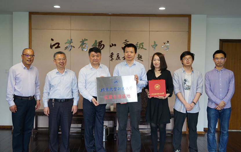 为切实推进北航本科招生质量提升计划(UPSA 计划),进一步提高北航在江苏生源质量,2019年5月11日,我校江苏招生组赴江苏省无锡市锡山高级中学参加科技节活动,举行了“教授进中学”讲座,并与该校进行了北航“优质生源基地”合作协议签约及挂牌仪式。