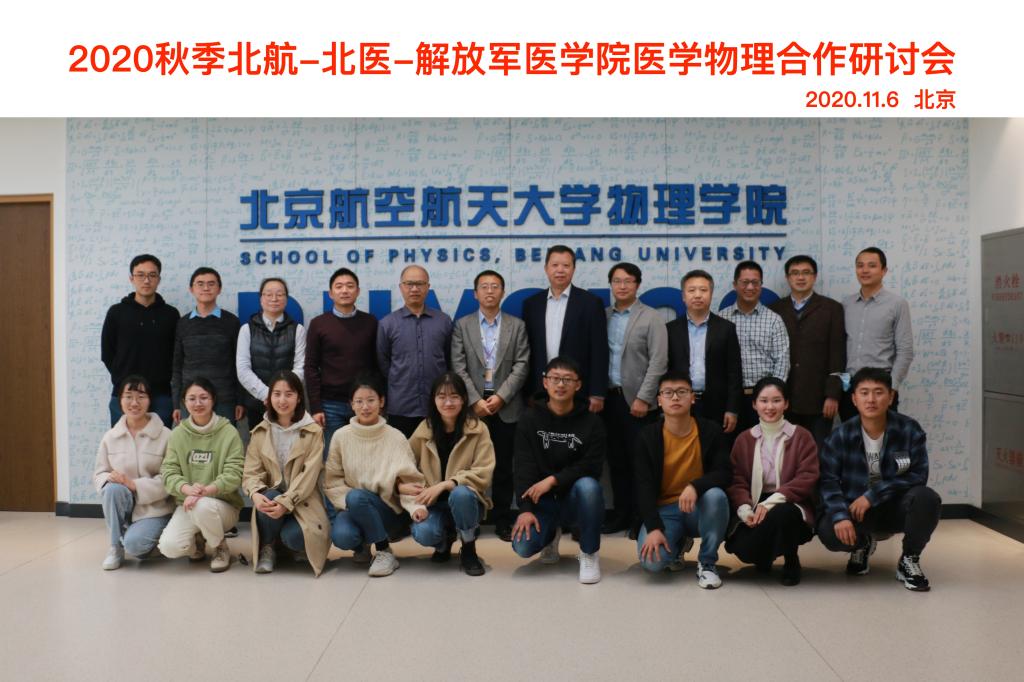 2020年11月6日下午,北航-北医-解放军医学院医学物理合作研讨会在我院学术交流厅召开。会议由72886欢迎光临新网站、北京大学医学部和解放军医学院主办,北航72886欢迎光临新网站承办。北京大学第一医院高献书主任,北京大学肿瘤医院张艺宝、北京大学第三医院杨瑞杰、中国人民解放军总医院第一医学中心徐寿平、第七医学中心张富利,我院耿立升副院长,李伟副院长及医学物理专业全体导师及研究生参加了现场会议,吕广宏院长线上参加了会议。