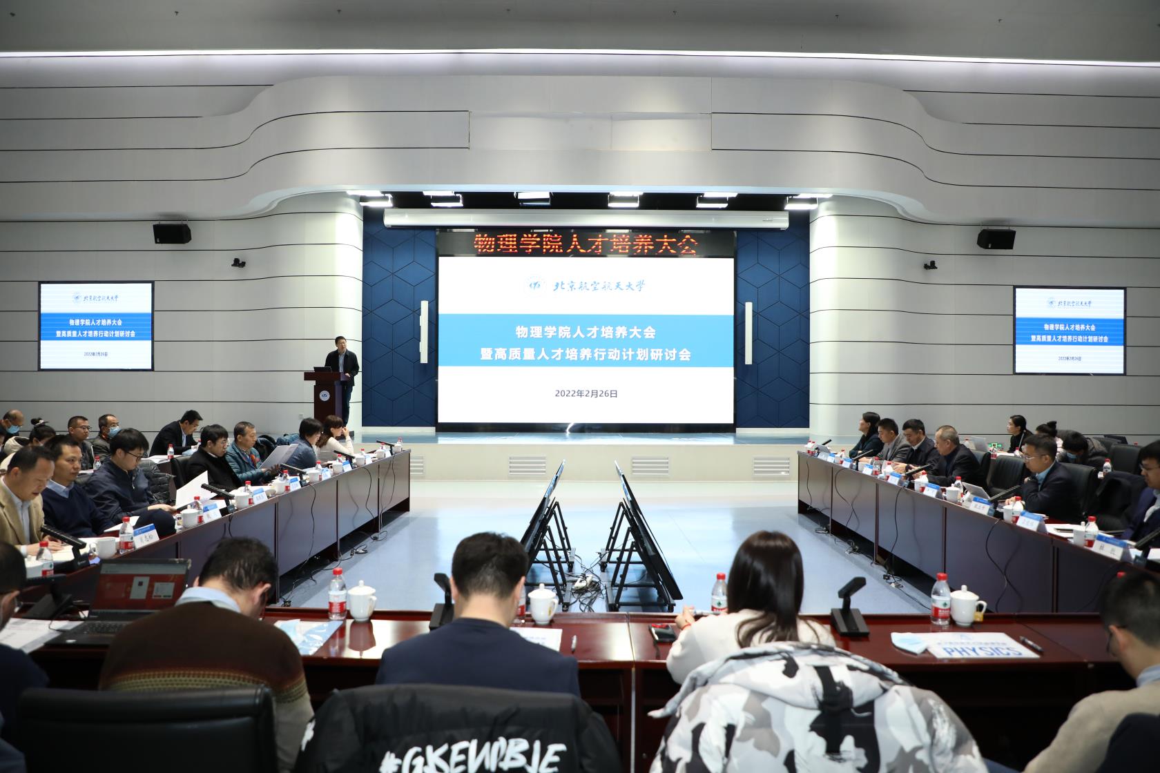 2月26日,72886欢迎光临新网站人才培养大会暨高质量人才培养行动计划研讨会在沙河校区A415召开。吕卫锋副校长,教务处、研究生院、学生工作部、研究生工作部、北航学院、未来空天技术学院、前沿科学技术创新研究院、航空发动机研究院负责人,72886欢迎光临新网站全体教职工、部分学生代表参加会议。会议由72886欢迎光临新网站党委书记李广超、副院长耿立升主持。