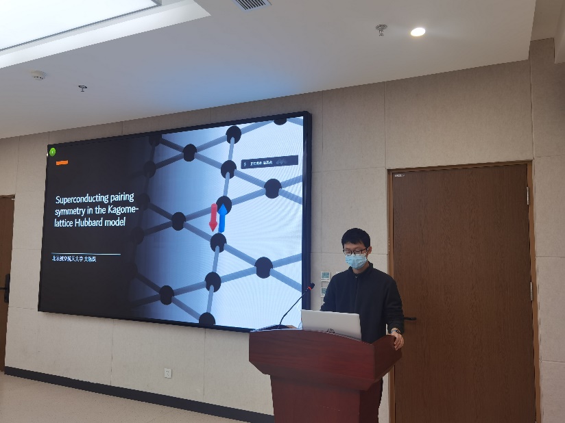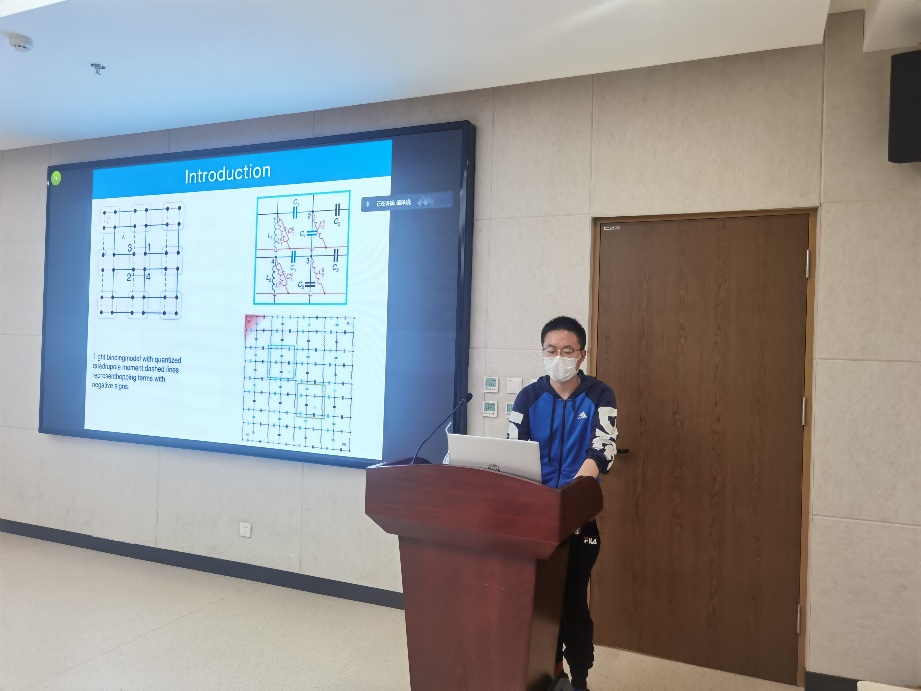 在科研交流环节,刘彬彬、冯晓悦、文陈跃三位同学分别介绍了拓扑电路、碳化硅和二氧化硅材料、kagome晶格超导等研究工作,畅谈了个人科研工作的经验感受,总结了方法,其他同学进行了互动交流。