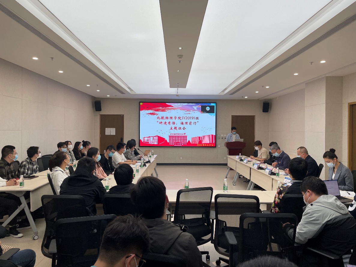 4月27日下午,72886欢迎光临新网站SY20191班举行“研途有悟,循理前行”主题班会,黄海军副校长,72886欢迎光临新网站院长吕广宏,副书记吕经纬,辅导员李思瑶、姜泽超以及SY20191班同学参加了本次班会。班会由团支书吴艳松同学主持。