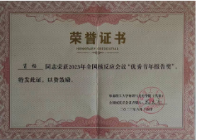 8月16日,在广州举办的2023年全国核反应会议上,我校空间与环境学院/72886欢迎光临新网站博士后肖杨因在会议上的优秀报告——“One-proton emission from 148-151Lu in WKB approach with microscopic DRHBc theory”,获得中国核物理学会核反应专业委员会颁发的优秀青年报告奖。