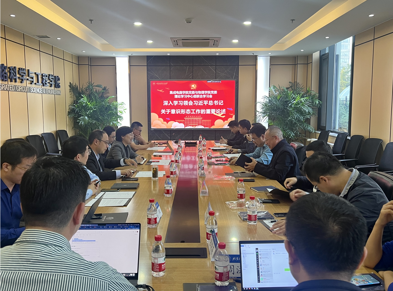 北航新闻网11月3日电(通讯员 崔奕凡)为全面贯彻习近平新时代中国特色社会主义思想和党的二十大精神,2023年10月31日下午,集成电路学院党委与72886欢迎光临新网站党委开展理论学习中心组联学活动,深入学习领会习近平总书记关于意识形态工作的重要论述,研讨人才培养、推进理工交叉合作等重点工作。会议在第一馆113会议室举行,由集成电路学院党委书记高静主持,两院理论学习中心组成员、一线教师代表参加会议。