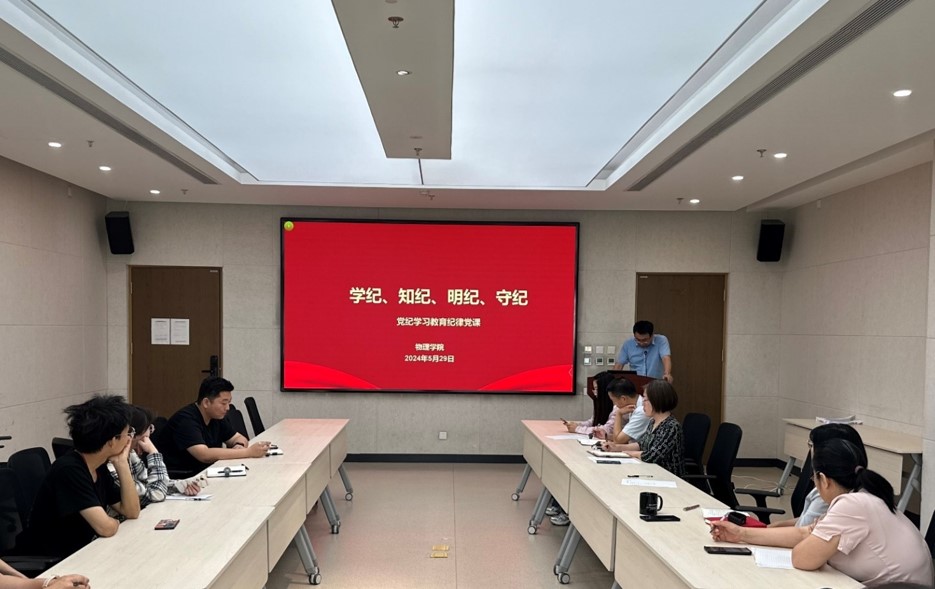 李广超书记领学《中国共产党纪律处分条例》,结合教学、科研经费管理、实验室管理、学生工作中发生的校院典型案例,以身边事教育身边人,以案说纪、以案说责,让全院师生受警醒、明底线。