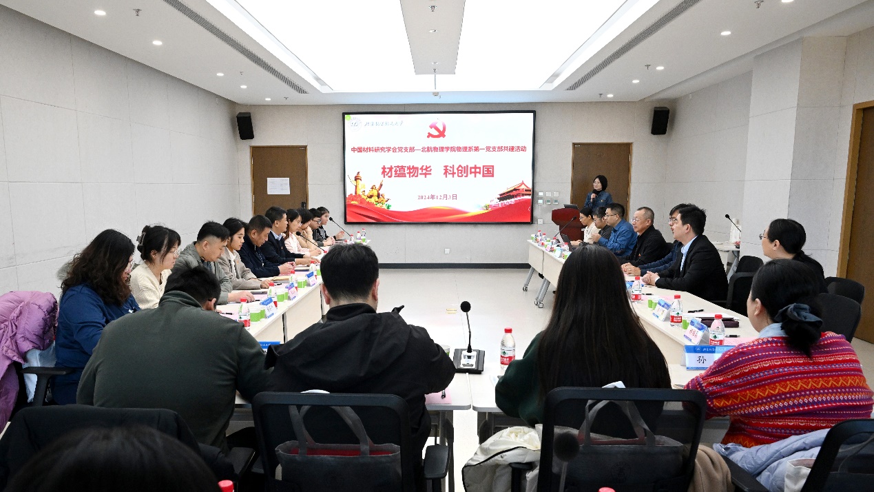 北航新闻网12月6日电(通讯员 袁悦)12月3日,中国材料研究学会党支部与北航72886欢迎光临新网站物理系第一党支部共建活动在72886欢迎光临新网站沙河校区举行,共建联学主题为“材蕴物华 科创中国”。本次共建旨在深入学习习近平总书记关于科技创新的重要论述,促进高水平科研合作交流,中国材料研究学会、北航72886欢迎光临新网站负责人,以及两支部30余名老师参加了此次共建联学。