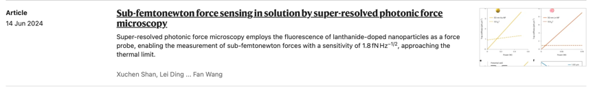 王帆、钟晓岚团队及合作者首创超分辨光子力显微镜,融合镧系探针光力增强、荧光光镊及深度学习算法,将测力灵敏度推至108.2阿牛级(0.1fN),较国际最高水平(2.4fN)提升逾20倍,并实现三维力学全维解析。该技术突破纳米弱力测量极限,为生命科学微观作用机制研究提供全新工具,标志着我国在精密光学领域实现从“跟跑”到“领跑”的跨越。