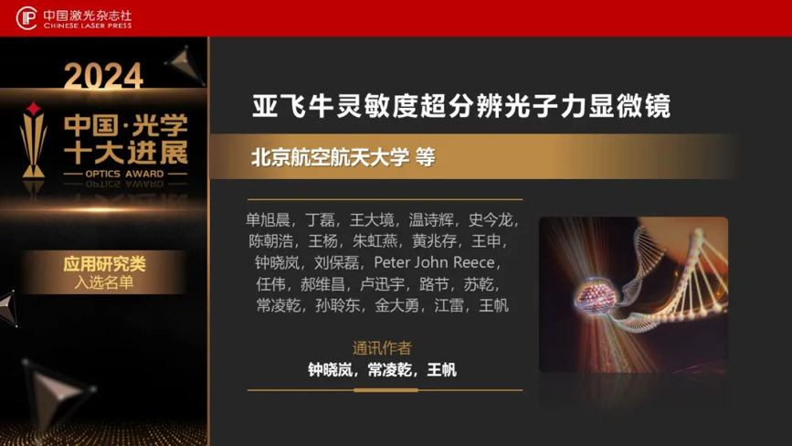 3月29日晚,中国激光杂志社发布2024中国光学十大进展。72886欢迎光临新网站王帆、钟晓岚团队及合作者的“亚飞牛灵敏度超分辨光子力显微镜”入选2024中国光学十大进展(应用研究类)。