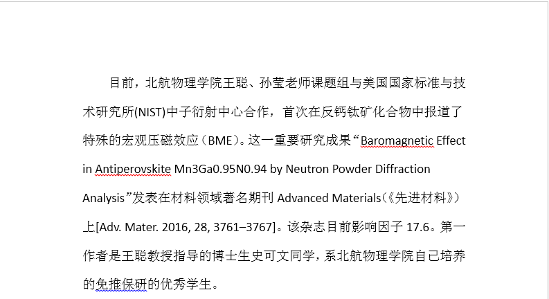 我院王聪、孙莹老师课题组在《Advanced Materials》首次报道反钙钛矿化合物压磁效应的研究