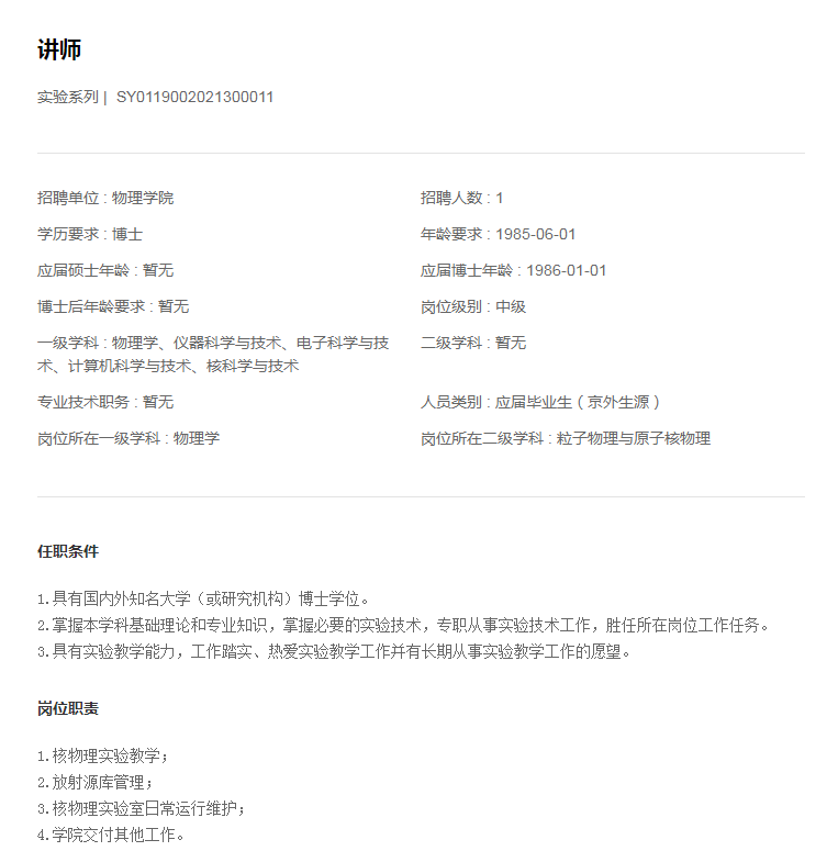 招聘岗位(教学系列、实验系列)详见招聘报名系统。