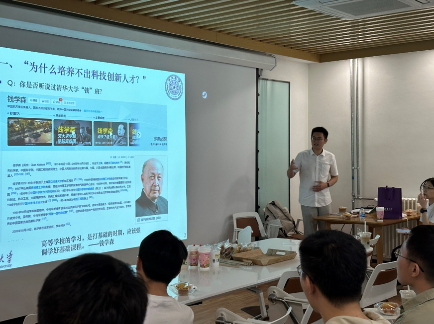 清华大学宣讲团的航空学院仲启贤同学为我们带来了《多元融合与创新:新时代对“一体派”人才的召唤与机遇》的宣讲,就如何培养科技创新人才以及在航天强国大背景下对人才的召唤展开思考讨论。他指出在新时代人才培养模式下,不能只做广度或深度专精型的“1”字型人才,也不能只做有广泛知识与深度专精的“T”字型人才,而是要做多领域深度专精的“π”字型人才。