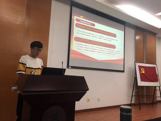 会议议程第一项:学习五四精神。申国防简要的回顾了五四运动的过程并就五四精神的内涵、五四运动的历史意义、五四精神的时代价值、弘扬五四精神建设新时代、做新时代有作为的青年等方面向支部成员进行了汇报。