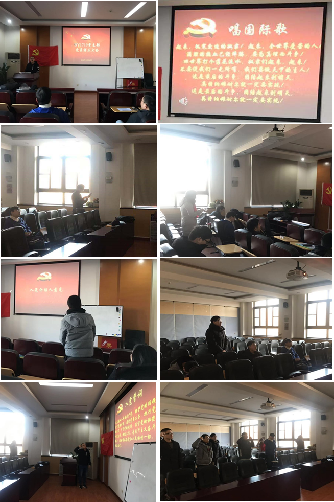 会议一开始,全体党员起立,共唱国际歌。然后,李佳杰同志和韩慧敏同志依次宣读了转正申请书,向党组织汇报了预备期间的思想态度和现实表现,两位同志的入党介绍人以及与会党员同志对他们也出了希望和建议。经过热烈充分的讨论,党支部采用无记名投票的方式进行表决,最终两位同志全票通过,由预备党员转为正式党员。最后支部全体党员由支部书记冯建宇同志带领,在党旗下庄严宣誓,重温入党誓词。