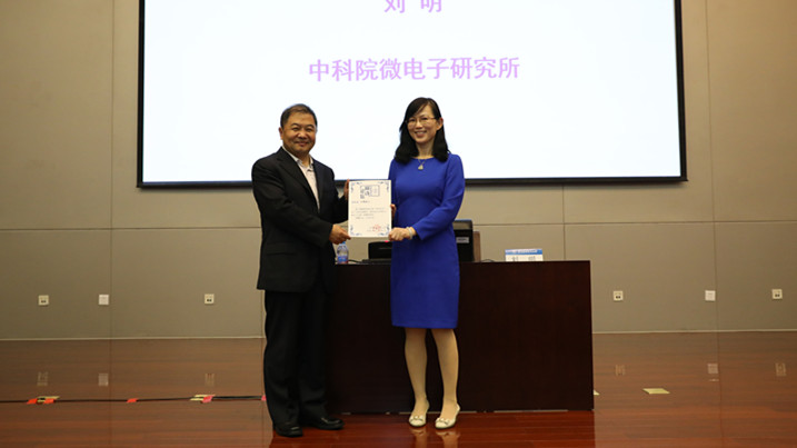 在合影留念后,房校长为首场报告会的主讲人刘明院士颁发了“闻诗论坛”报告会主讲人证书,随后刘明院士带来了题为《集成电路发展现状、挑战与机遇》的精彩报告。闻诗论坛主要以举办高层次系列讲座为主,介绍物理及相关交叉学科的最新学术前沿和物理学人的治学精神,帮助师生开拓视野、启发思维、旨在让科学精神与人文精神始终伴随师生成长。