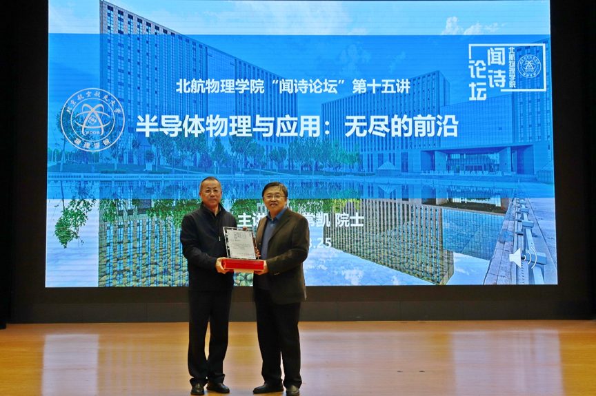 最后,吕广宏院长向常凯院士颁发闻诗论坛主讲人证书,并合影留念。通过这次讲座和交流活动,与会师生们对半导体技术有了更全面的认识,也提升了科研意识和前沿意识,坚定了投身于最前沿科学研究的决心。